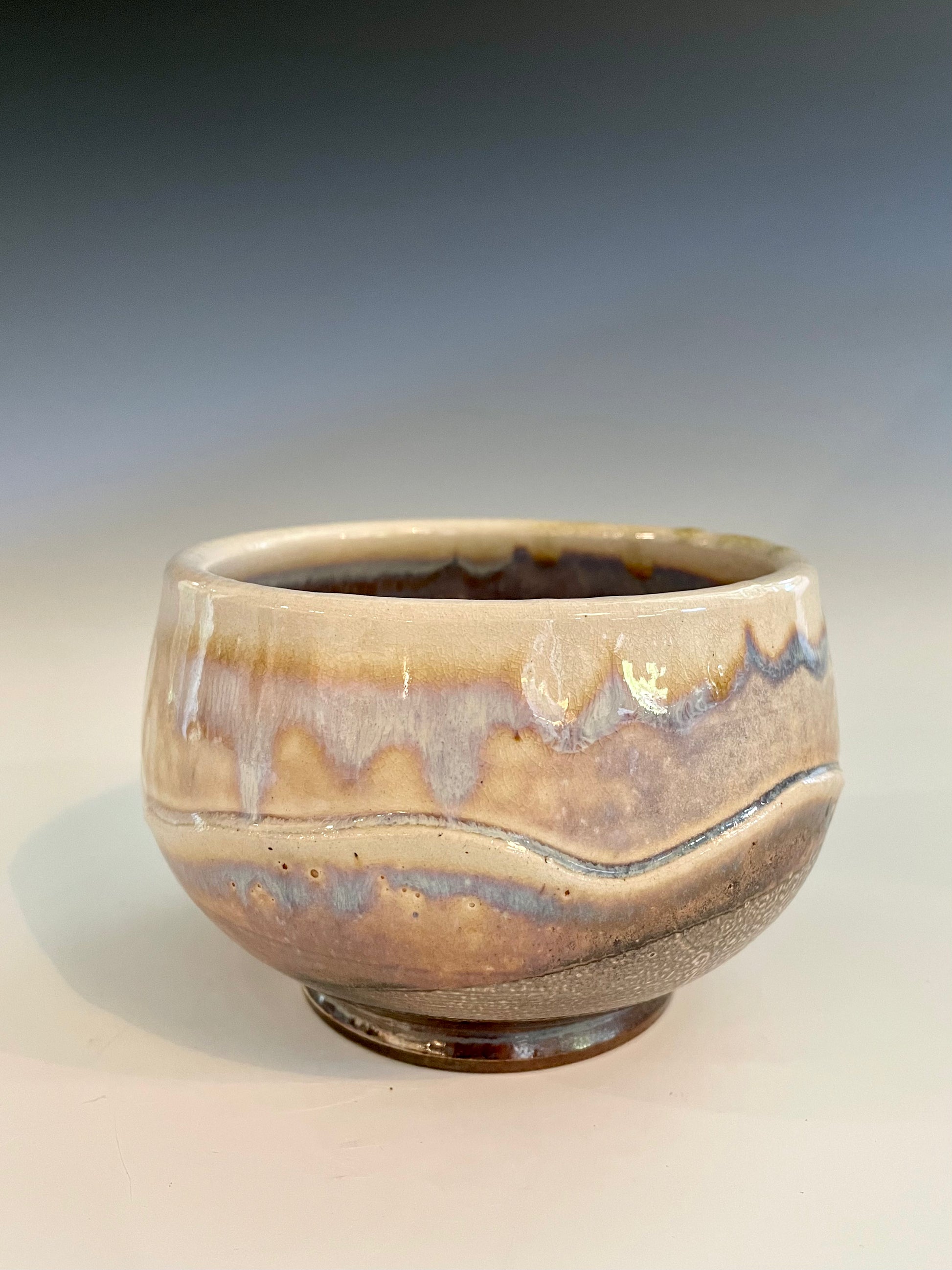 A cozy, beautiful soup bowl can add just the right flair to that perfect chili recipe. This 10-12oz bowl is soda fired with wood and waste vegetable oil from local restaurants. The ergonomically curved lip keeps all the soup where it should be, either in the bowl or in your mouth. Top rack dishwasher safe, hand wash recommended.