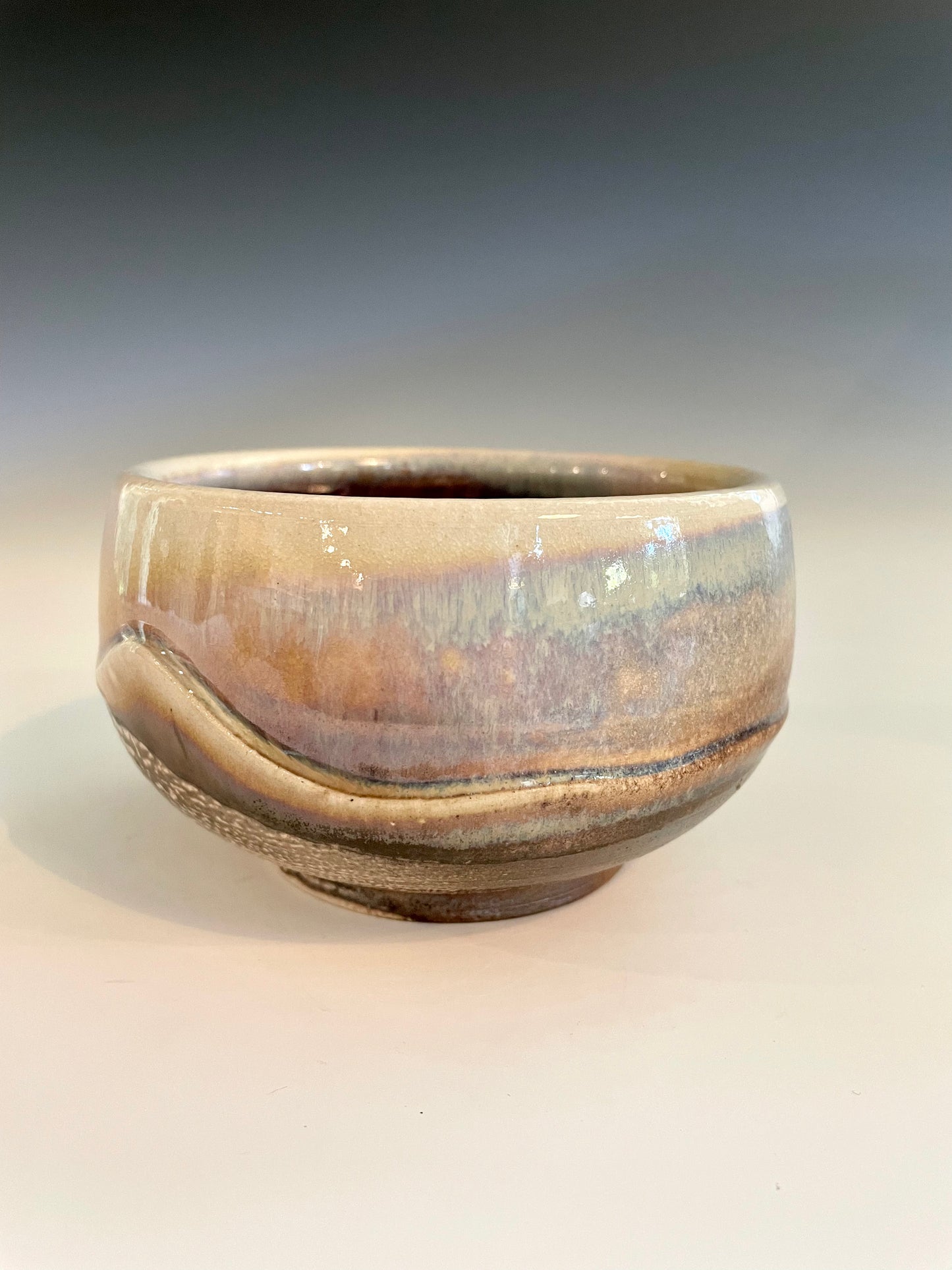 A cozy, beautiful soup bowl can add just the right flair to that perfect chili recipe. This 10-12oz bowl is soda fired with wood and waste vegetable oil from local restaurants. The ergonomically curved lip keeps all the soup where it should be, either in the bowl or in your mouth. Top rack dishwasher safe, hand wash recommended.