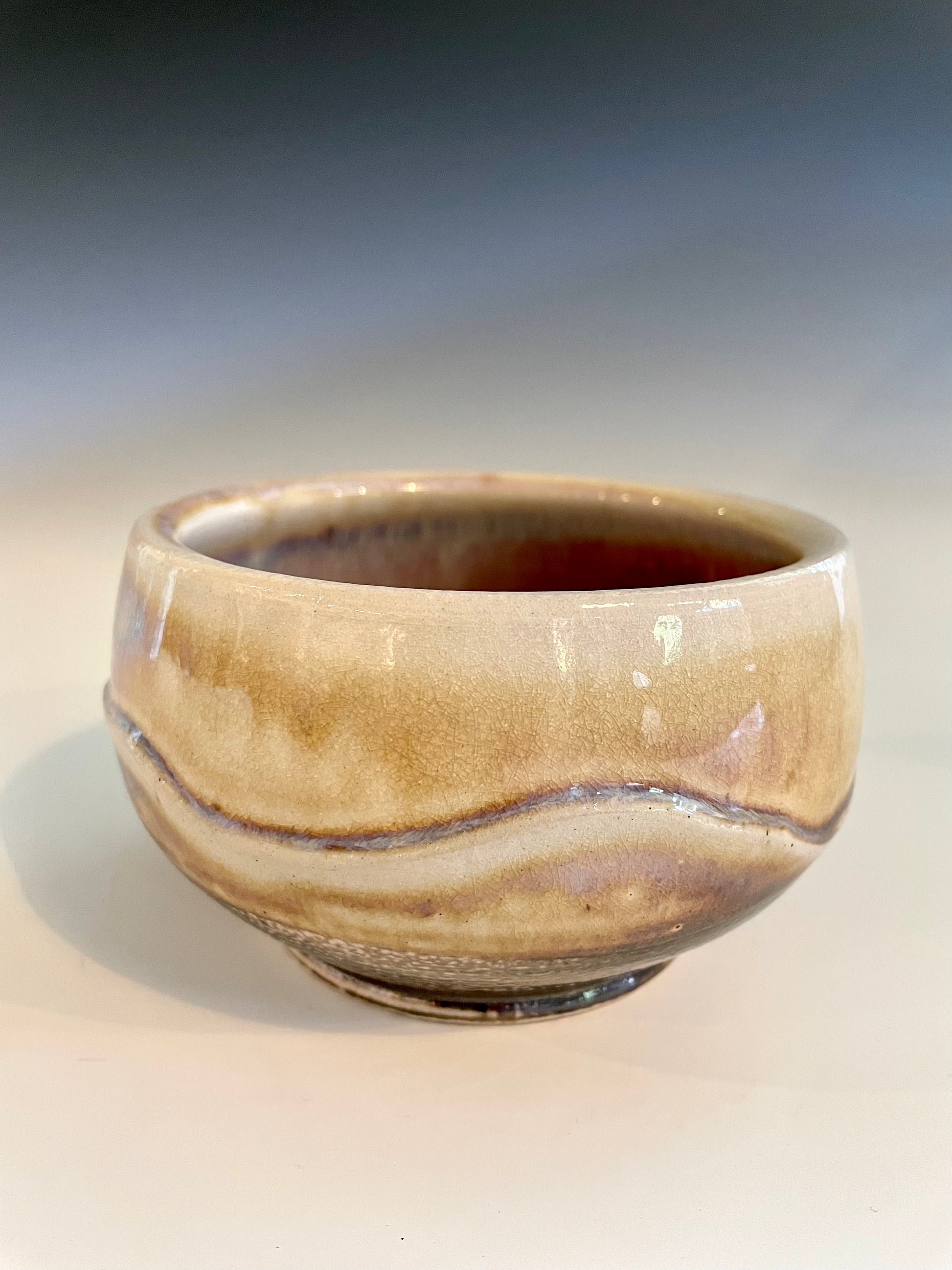 A cozy, beautiful soup bowl can add just the right flair to that perfect chili recipe. This 10-12oz bowl is soda fired with wood and waste vegetable oil from local restaurants. The ergonomically curved lip keeps all the soup where it should be, either in the bowl or in your mouth. Top rack dishwasher safe, hand wash recommended.